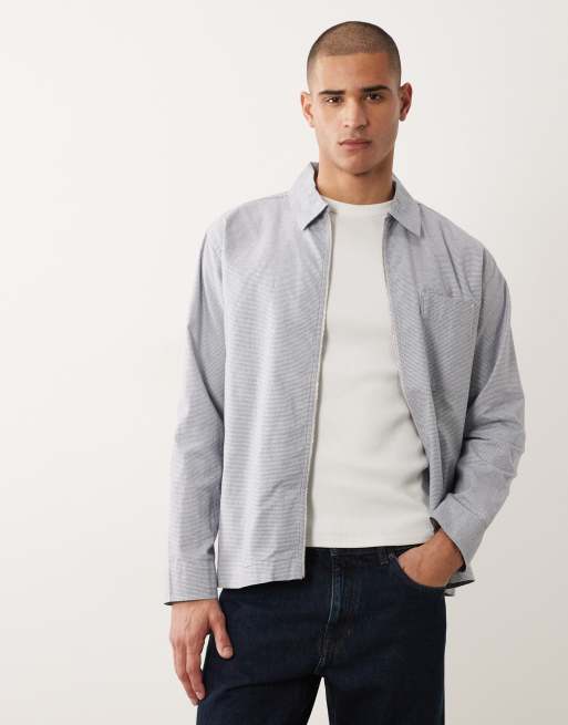 Selected 100% cotton double zip overshirt in blue micro plaid