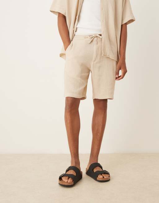 Selected 100% cotton textured shorts in cream - part of a set