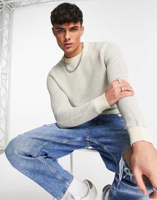 Selected Homme cotton blend textured sweater in ecru - STONE
