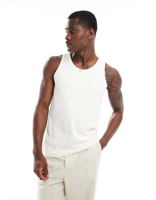 Selected Homme ribbed tank top in white