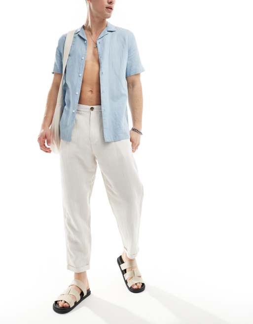 Selected loose fit cropped linen mix pants in beige
