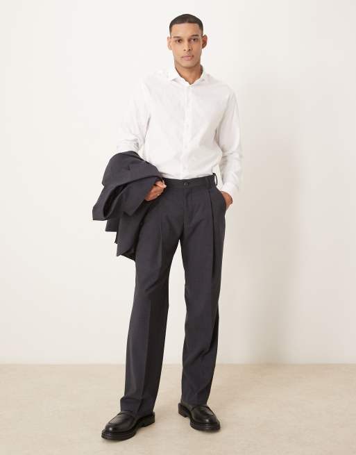 Selected Otto relaxed fit wool blend pants in dark gray melange
