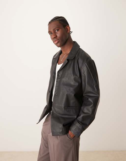 Selected real leather blazer jacket in black