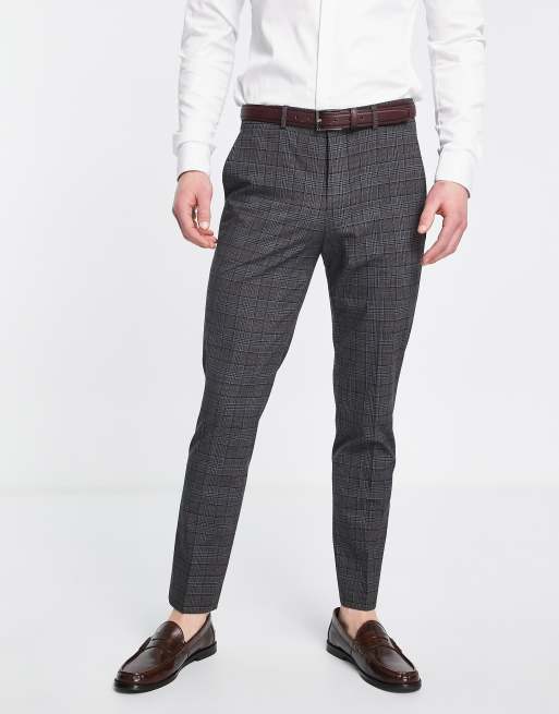 Selected slim fit suit pants in dark gray plaid