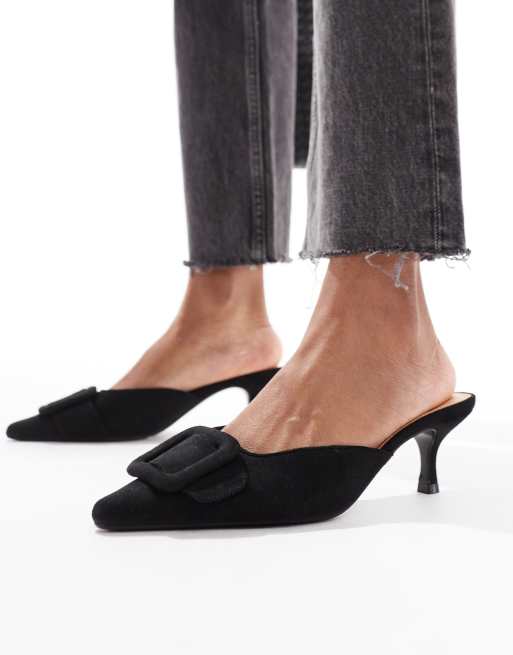 SEQWL Wide Fit mules with bow in black