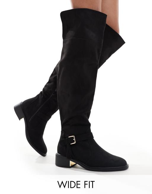SEQWL Wide Fit over the knee flat boots with tassels in black