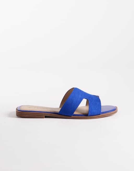 SEQWL Wide Fit Storke flat sandals in blue suedette