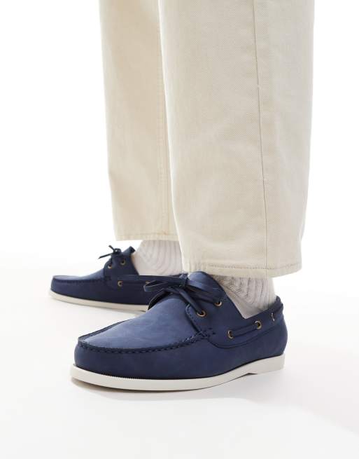 SEQWL AFT classic boat shoes in nubuck navy