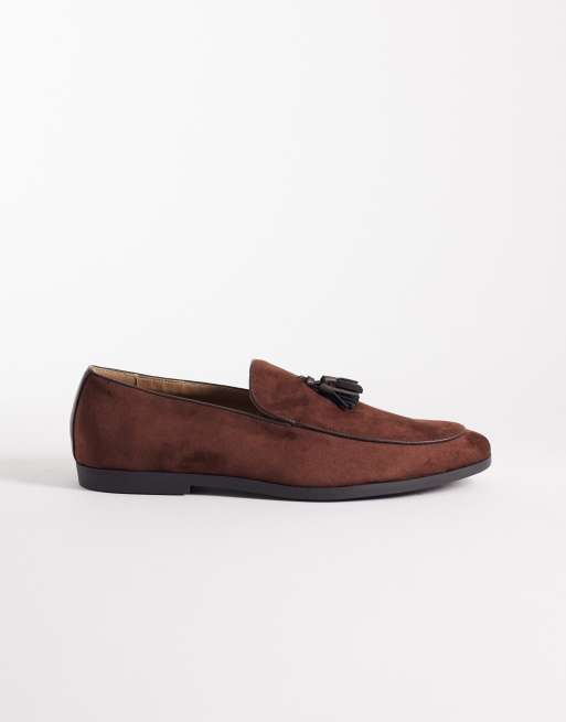 SEQWL Charlie tassel loafers in brown microsuede