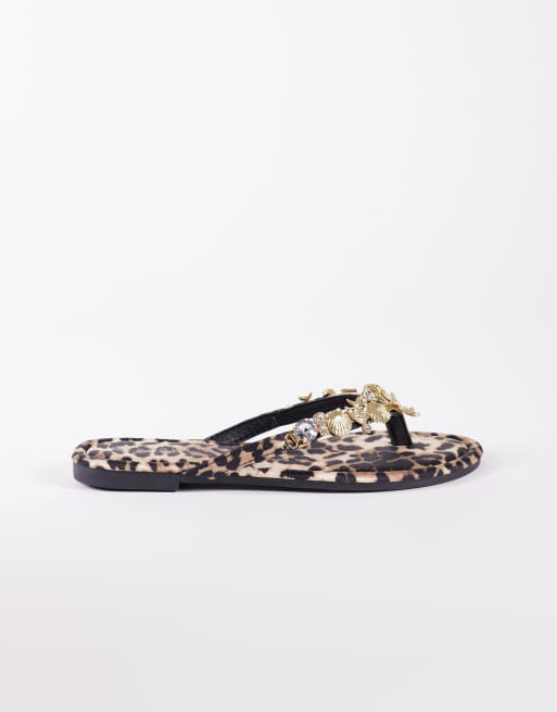SEQWL embellished flip flops in leopard