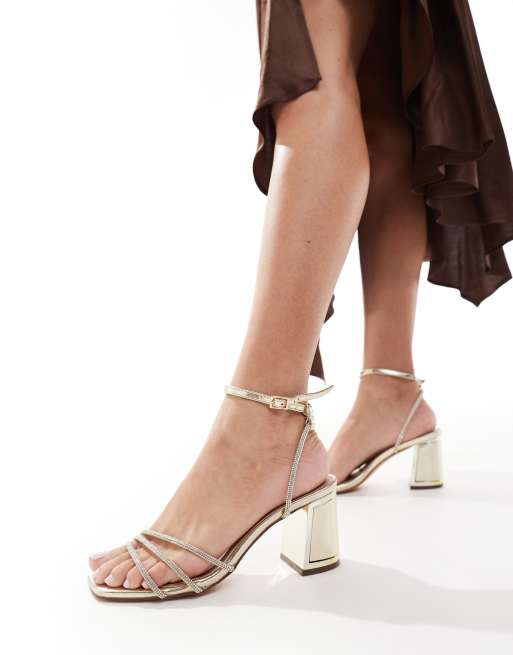 SEQWL Hewitt embellished strappy block heeled sandals in gold PU