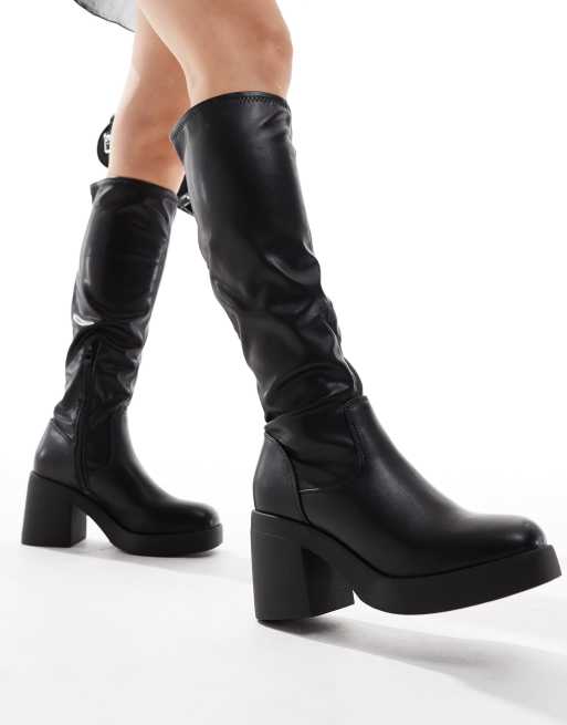 SEQWL knee-high sock block heel boots in black