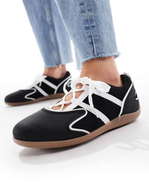 SEQWL lace up detail ballet inspired sneakers in black
