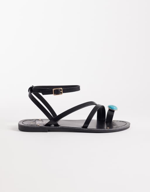 SEQWL strappy flat sandals with toe embellishment in black