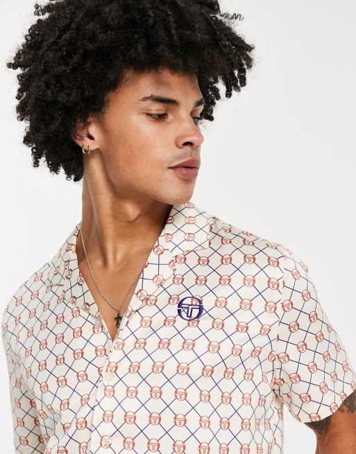 Sergio Tacchini revere collar monogram shirt in tan - exclusive to ASOS