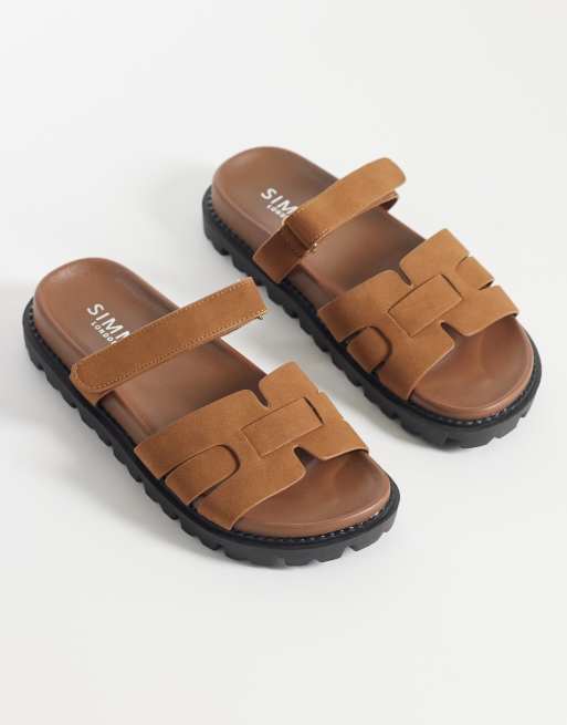 SIMMI London Adelle chunky sandal slides in tan