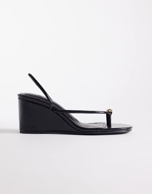 Simmi London Anya wedge sandals with gold-tone toe detailing in black
