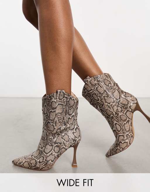 Simmi London Wide Fit Henry high ankle boot in bone snake