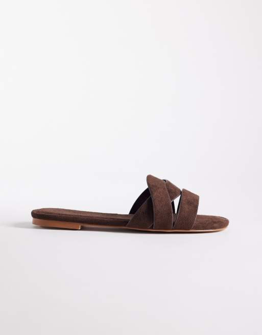 Simmi London Wide Fit Jade flat sandals in espresso suedette