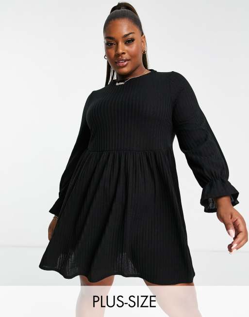 Simply Be ribbed smock mini dress in black