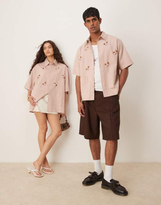Sister Jane Unisex 3D beaded floral shirt in pink - part of a set