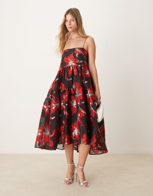 Dream Sister Jane jacquard cami midi dress in red and black floral