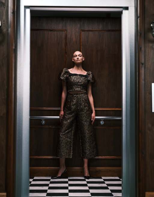 Sister Jane Cherie puff sleeve top and pants set in jacquard leopard print