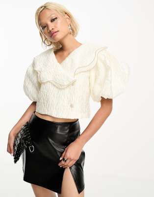 Sister Jane oversized collar jacquard top in white