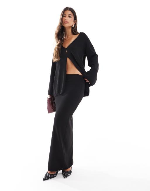 SNDYS premium knit low rise maxi skirt in black - part of a set