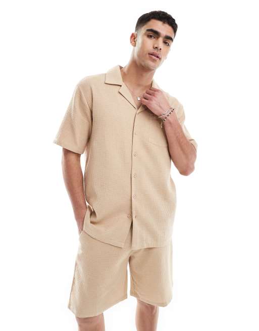 Sol Beach waffle knit beach shirt in beige