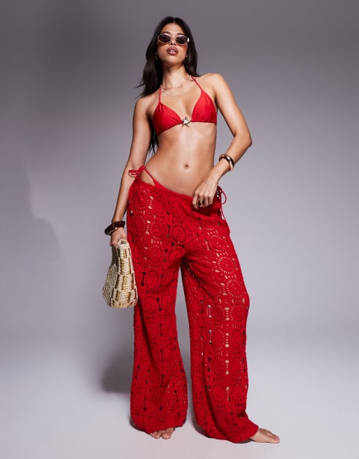 South Beach crochet beach pants in red