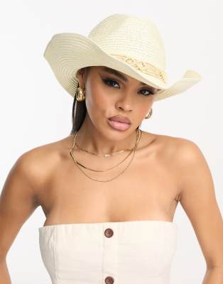 South Beach festival cowboy hat with crochet band in cream