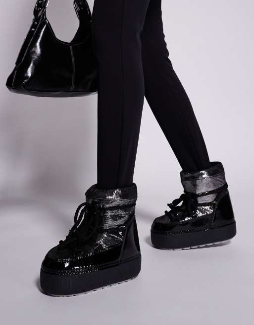 South Beach Lace Up Snow Boot in Black