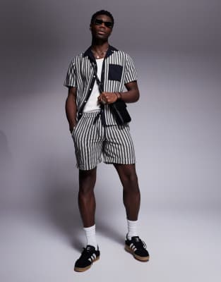 South Beach stripe knit beach short in black - part of a set