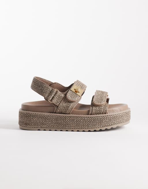 Steve Madden Bigmona flatform sandals in charcoal raffia