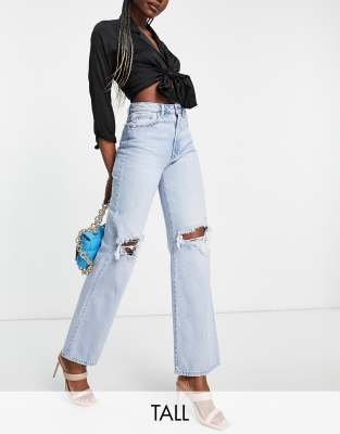 Stradivarius 90s dad jeans with rips in light wash