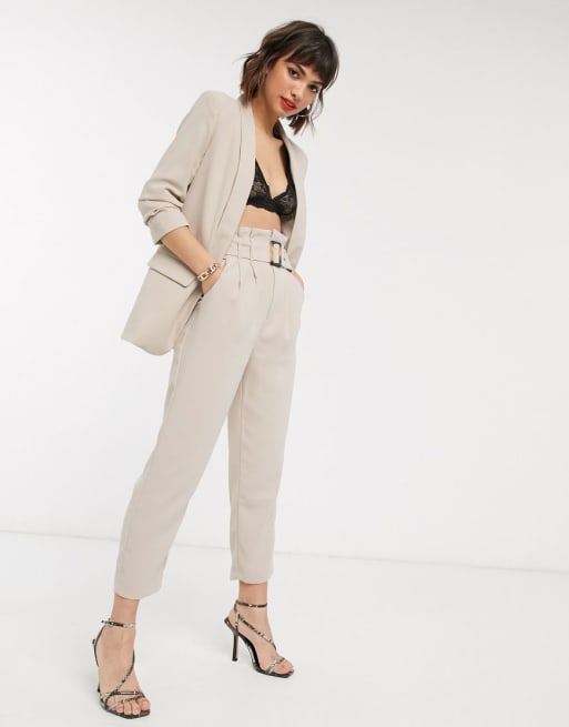 Stradivarius blazer and pants suit in beige