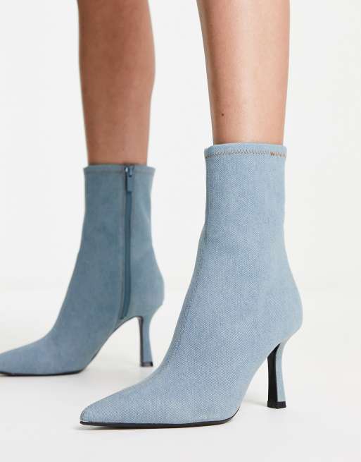 Stradivarius denim sock boots in light blue