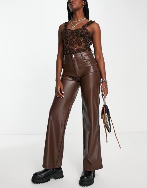 Stradivarius faux leather dad pants in brown