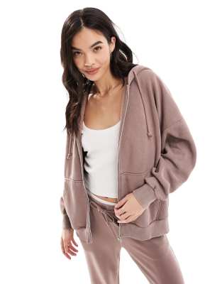 Stradivarius oversized zip thru hoodie in washed brown - part of a set