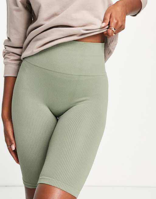 Stradivarius seamless ribbed legging shorts in sage