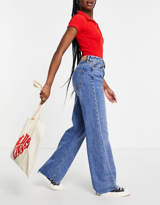 Stradivarius wide leg jeans with seam detail in light wash