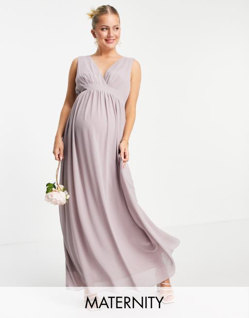 TFNC Maternity Bridesmaid top wrap chiffon dress in light gray
