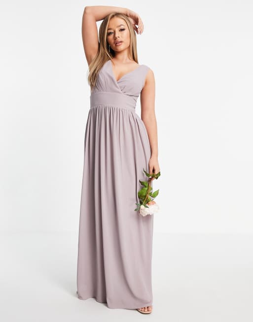 TFNC Bridesmaid top wrap chiffon dress in light gray