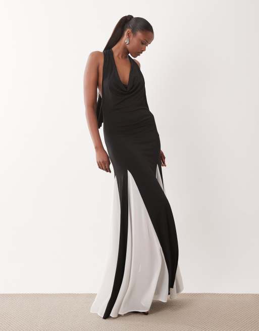 TFNC halter neck chiffon maxi dress in monochrome