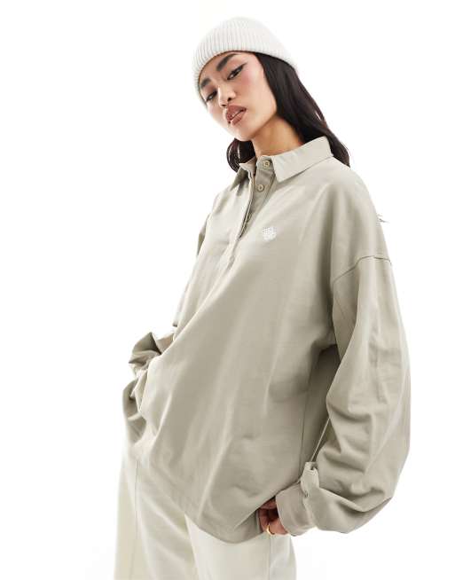 The Couture Club emblem waffle polo top in gray