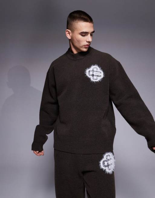 The Couture Club fluffy knit emblem sweater in brown - part of a set
