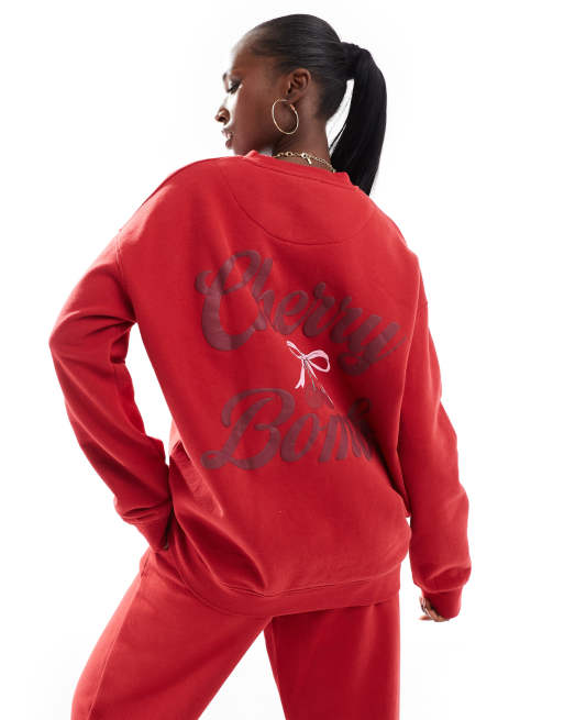 The Frolic exclusive Cherry Bomb back print sweatshirt in red - part of a set