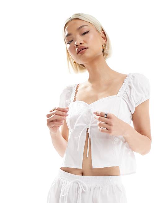The Frolic exclusive cotton milkmaid tie front pajama top in white - part of a set