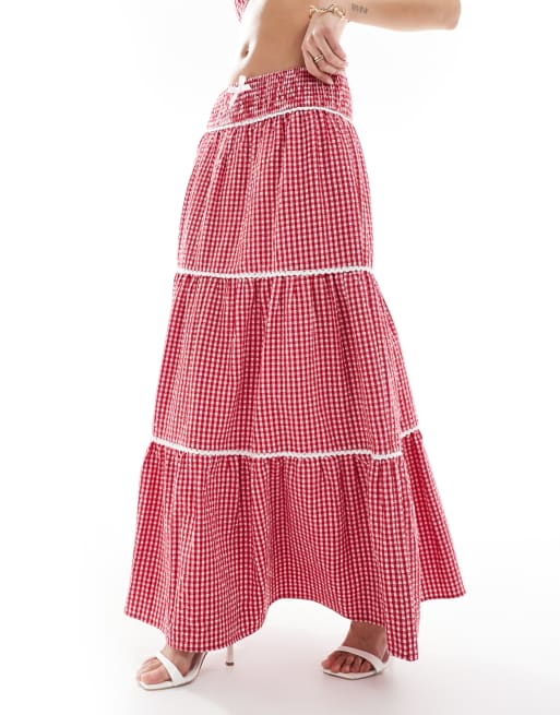 The Frolic Exclusive cropped cami top and maxi skirt set in red gingham